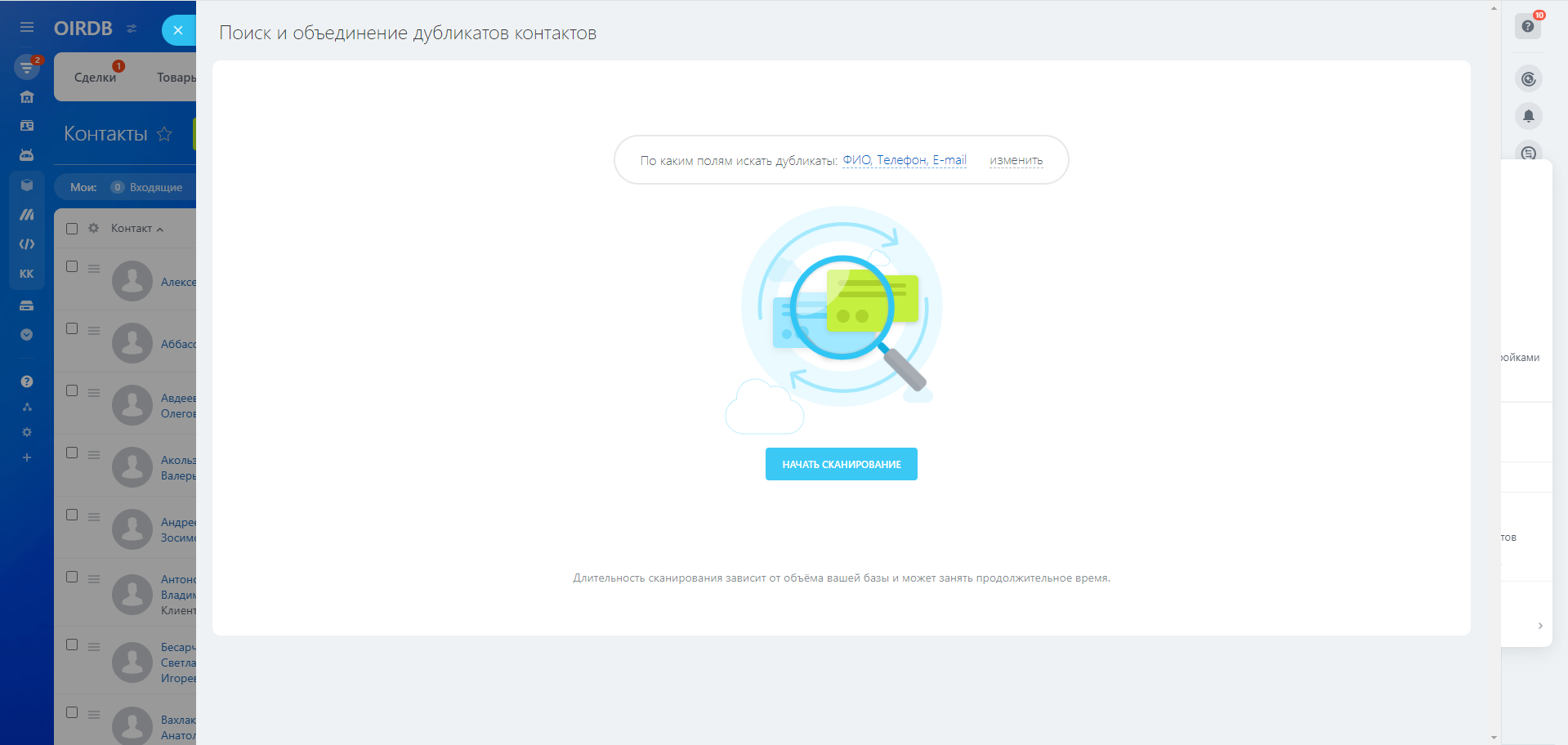 Нам остается выбрать - объединить их автоматически или вручную. Есть правда одно “но”, не всегда автоматически все объединяется, если информация в некоторых полях будет отличаться. Тогда переходим к ручному способу, система покажет нам карточки найденных совпадений и предложит их объединить, либо пометить, что это не дубликаты.