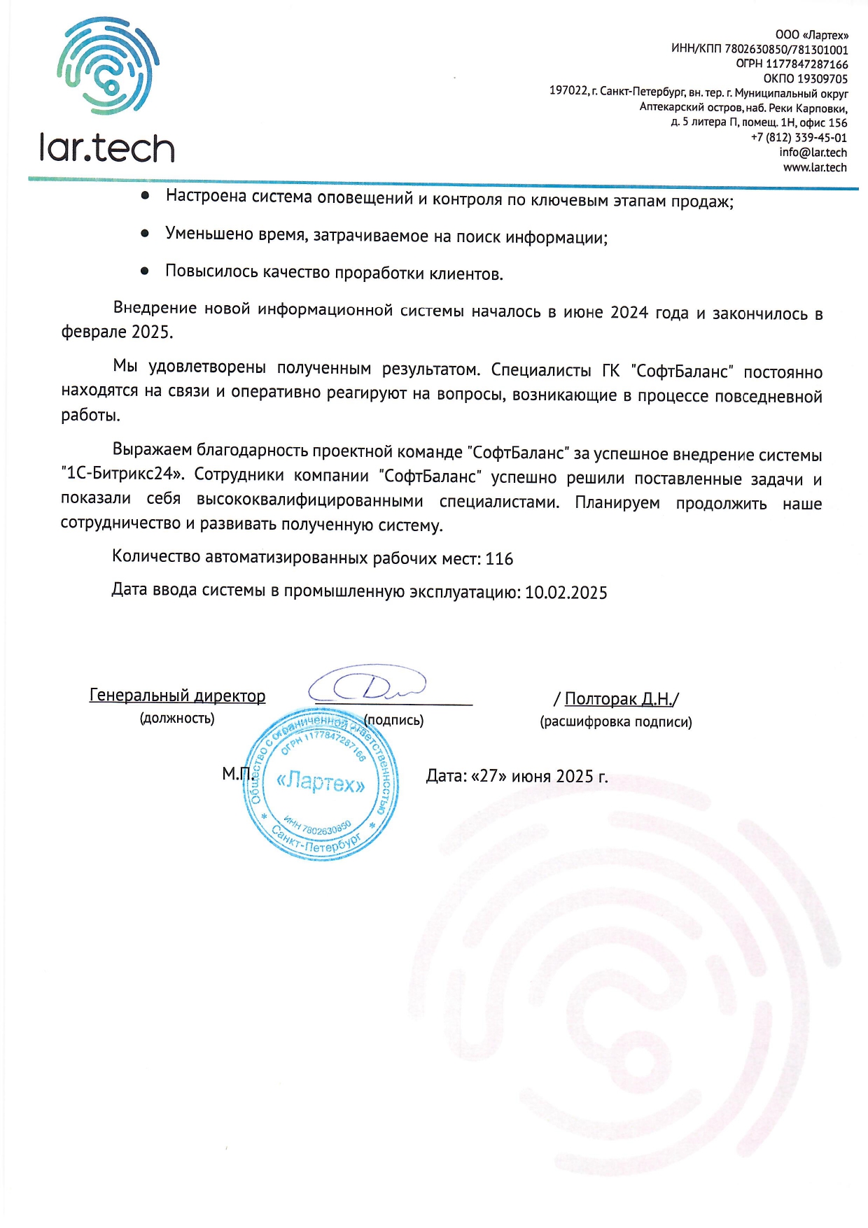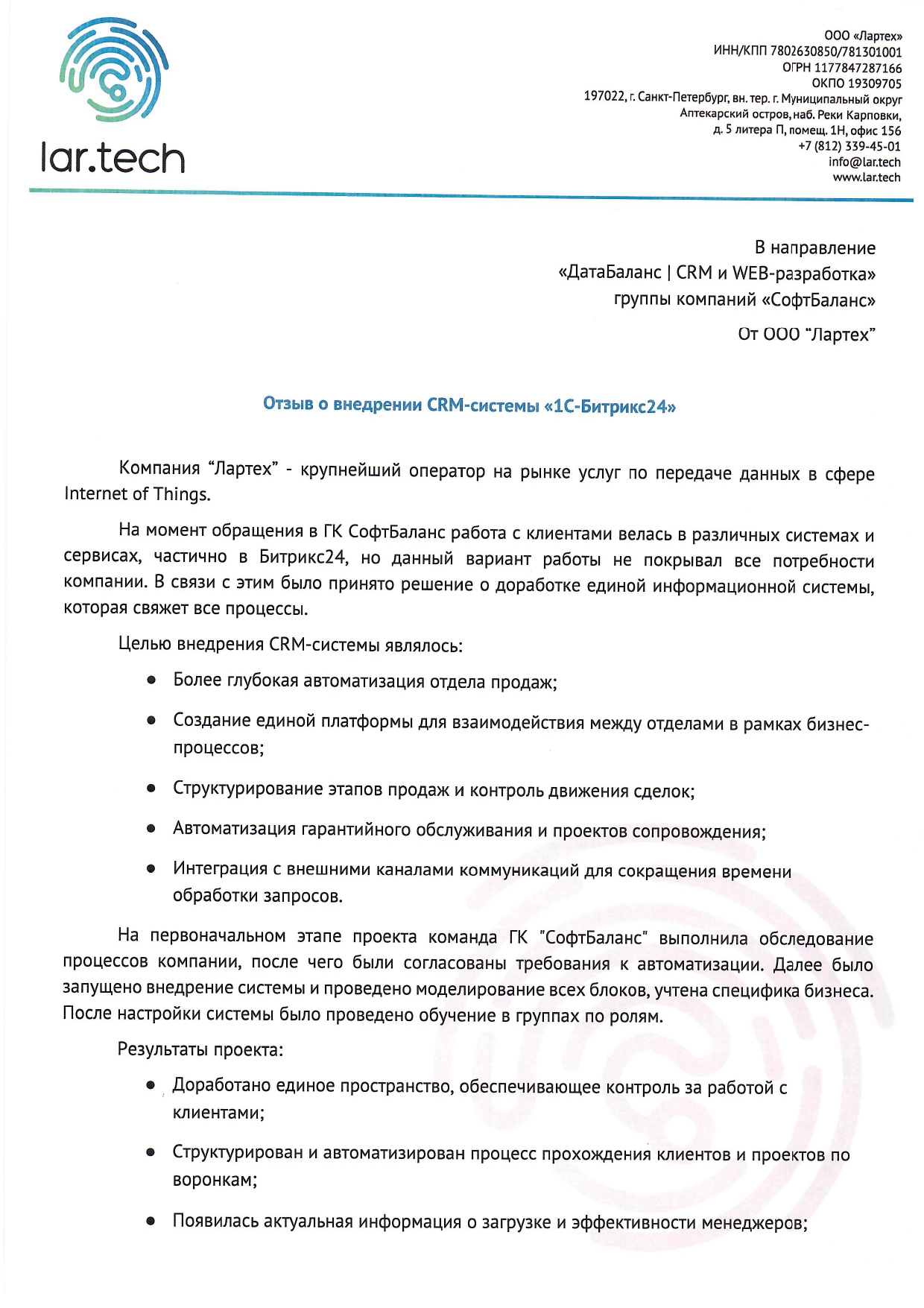 «Лартех» - оператор на рынке услуг по передаче данных в сфере Internet of Things. Основой для оказания услуг является: собственная сеть базовых станций, размещаемых во всех регионах России и телекоммуникационная платформа.